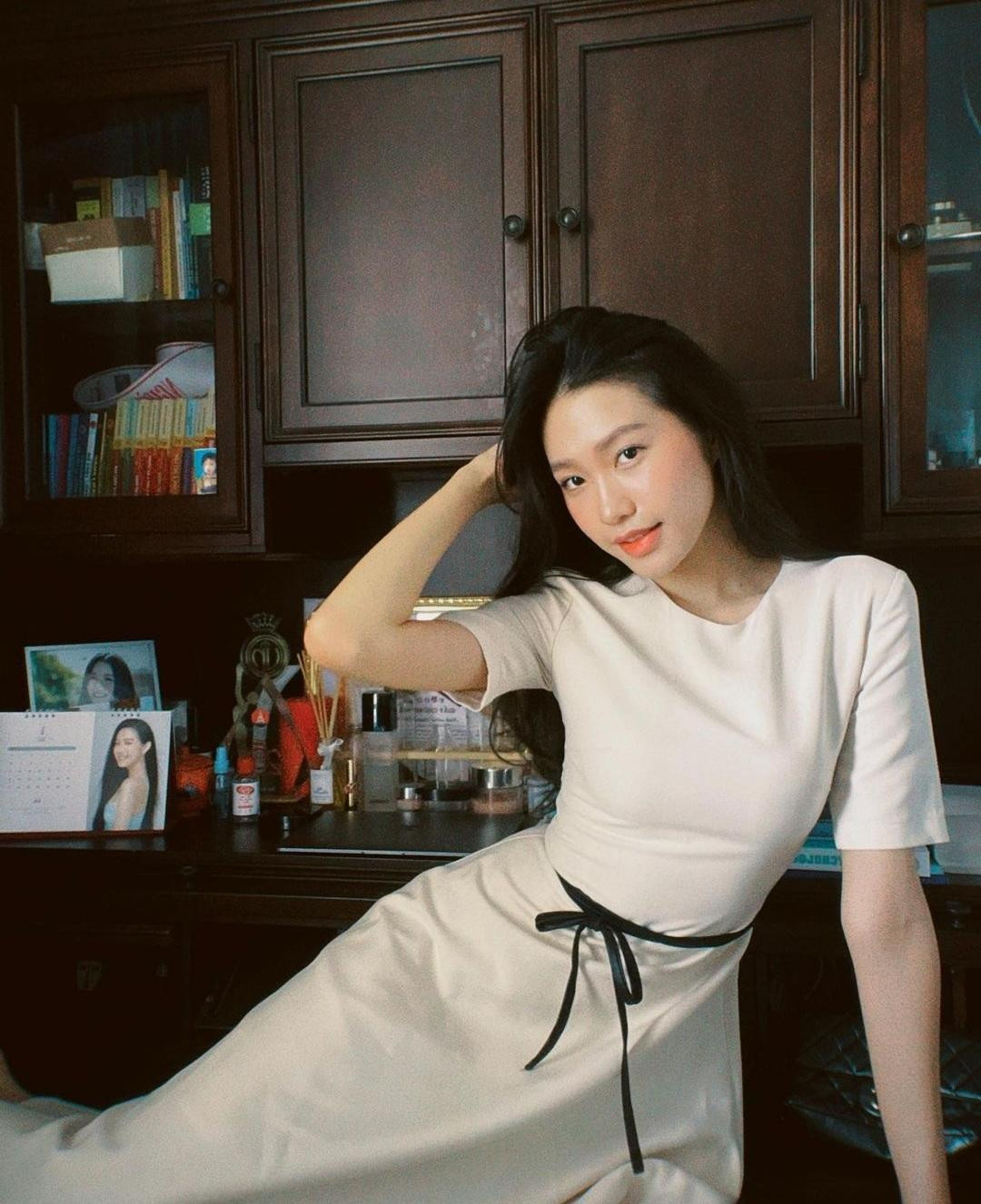 "Bạn gái tin đồn" của cầu thủ Đoàn Văn Hậu - người đẹp Doãn Hải My mặc váy trắng cổ tròn thắt nơ eo đơn giản mà vẫn xinh nhờ vóc dáng thon gọn, cân đối.