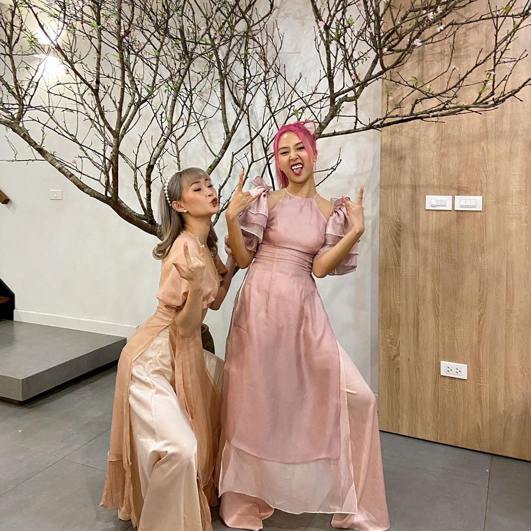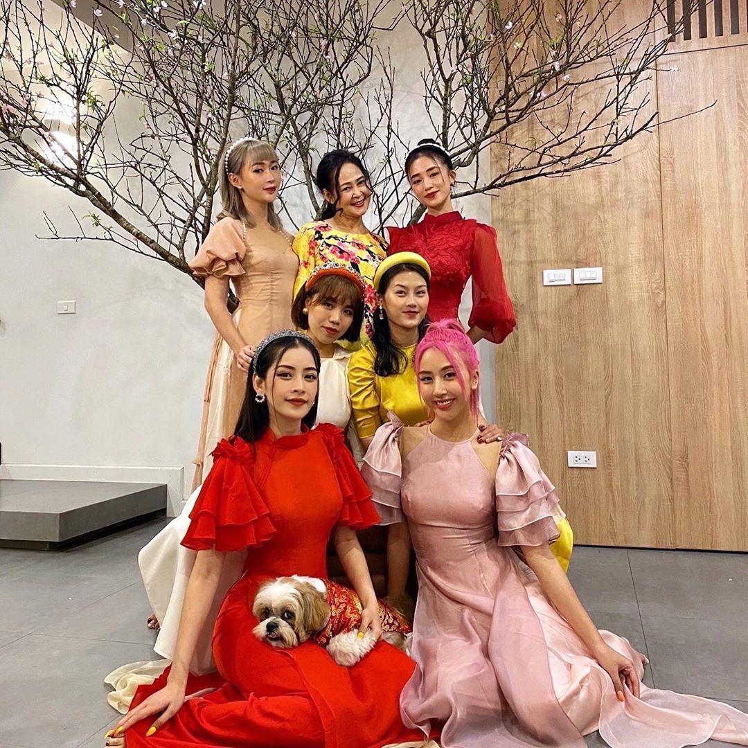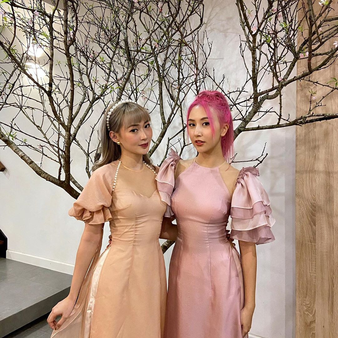 Chi Pu, Quỳnh Anh Shyn, Salim và Sun HT cùng diện áo dài cách điệu duyên dáng bên cây đào mừng xuân. Bộ tứ bạn thân đã có hơn 10 năm chơi cùng nhau và ủng hộ nhau hết mình trong công việc và cuộc sống thường ngày.