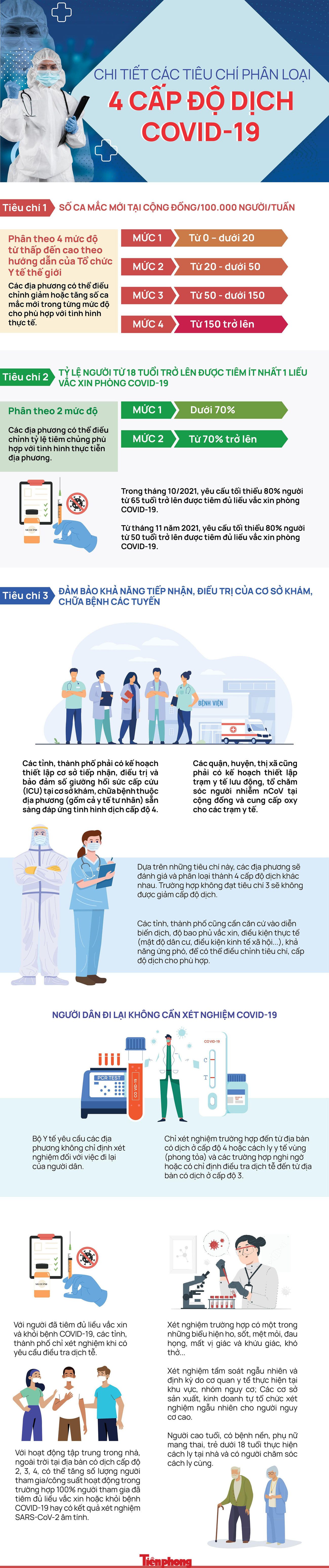Chi tiết các tiêu chí phân loại 4 cấp độ dịch COVID-19