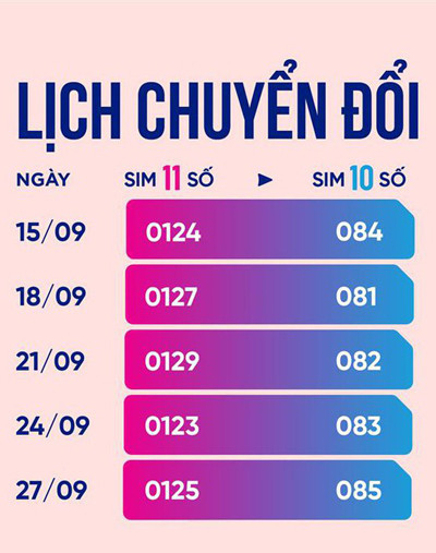 MobiFone: MobiFone cho biết, trong lần chuyển đổi này, MobiFone có 11 triệu thuê bao. Quá trình chuyển đổi từ 15/9-12/10 với 5 đợt, tương đương 5 đầu số.