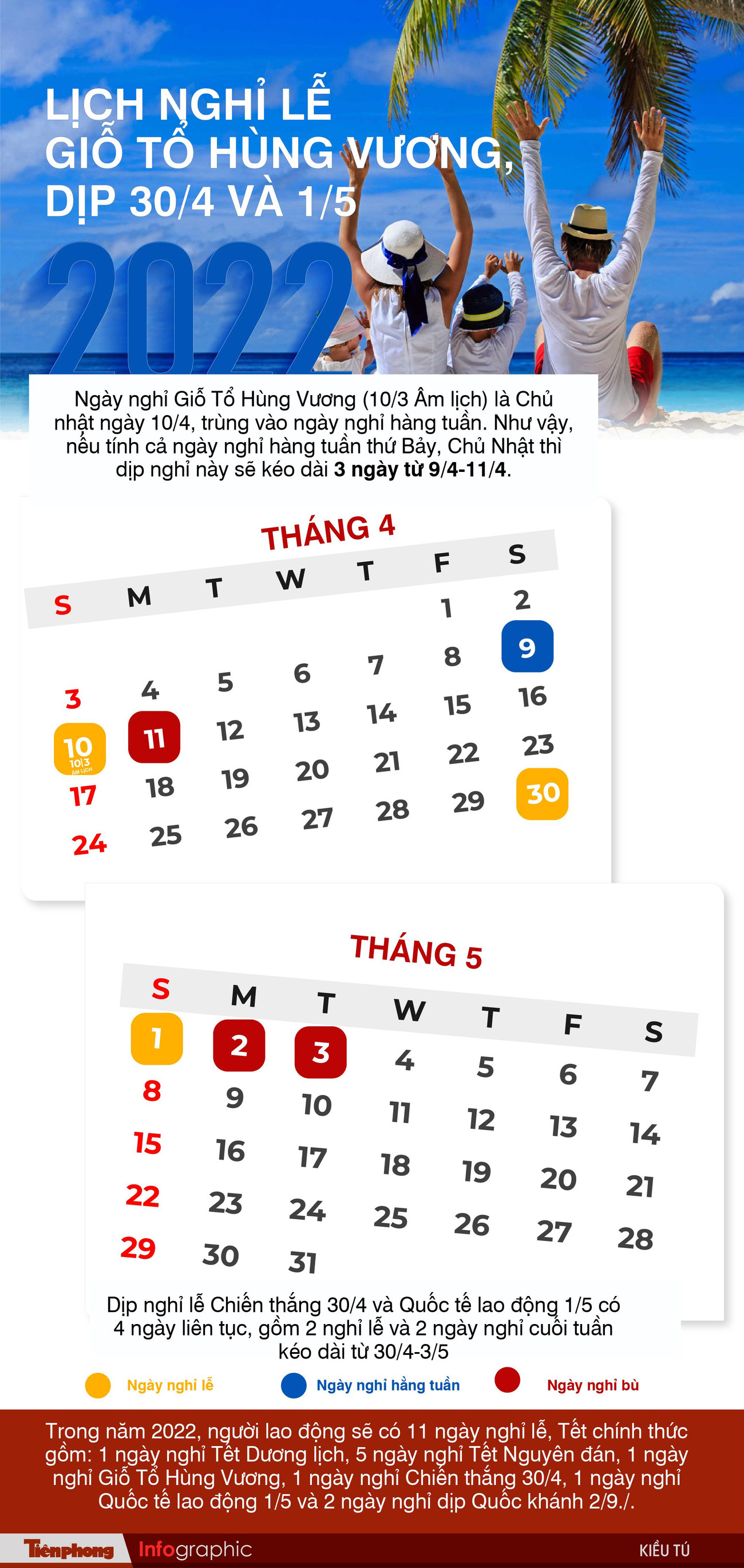 Chi tiết lịch nghỉ lễ Giỗ Tổ Hùng Vương và dịp 30/4-1/5