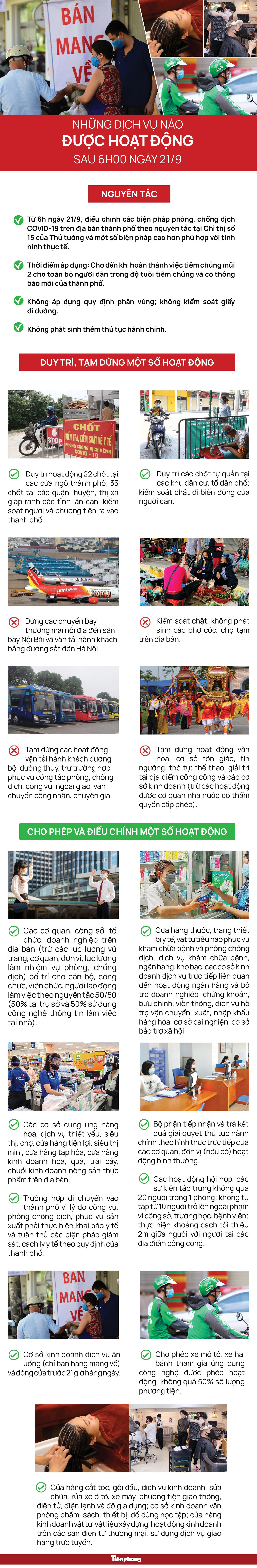 TPO - Kể từ 6h sáng 21/9, thành phố Hà Nội áp dụng nguyên tắc Chỉ thị 15 của Thủ tướng Chính phủ, nới lỏng nhiều hoạt động, dịch vụ trên địa bàn thành phố.