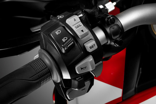 Tiện ích cho quãng đường di chuyển dài là bình xăng 18,8 lít, hệ thống đèn LED gồm cả đèn phanh. Điều khiển hộp số ly hợp kép thông qua công tắc trên tay lái bên trái như của ôtô thay cho dưới chân như môtô thông thường. Xe còn trang bị cả phanh đỗ, bằng cách kéo cần cũng ở tay lái bên trái, với 4 mức độ.