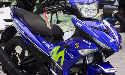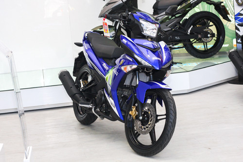 Mẫu xe côn tay 150 phân khối với bộ cánh màu xanh dương, logo chữ M màu vàng cách điệu, thiết kế vẫn giữ nguyên so với bản hiện tại.