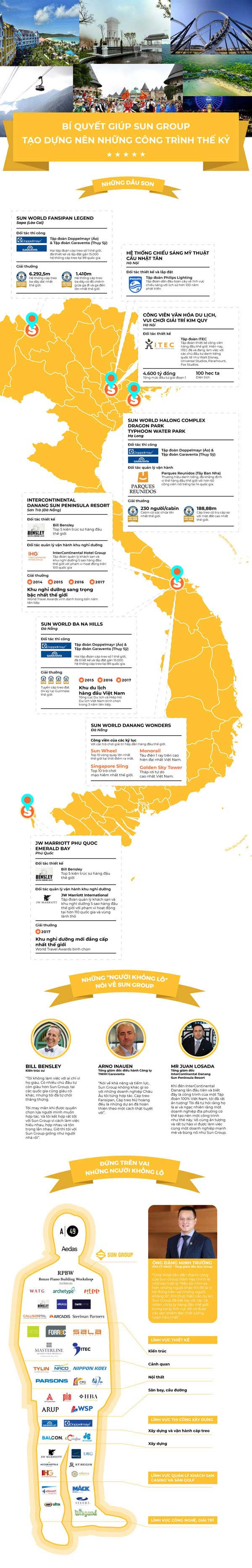 “Chìa khóa dẫn đến thành công của Sun Group hôm nay chính là nhờ vào triết lý: ‘Nếu tôi nhìn xa hơn những người khác thì đó là vì tôi đứng trên vai những người khổng lồ’”. Và đây là những “người khổng lồ” đã cùng tập đoàn này làm nên nhiều công trình ghi dấu ấn Việt Nam trên bản đồ du lịch thế giới.