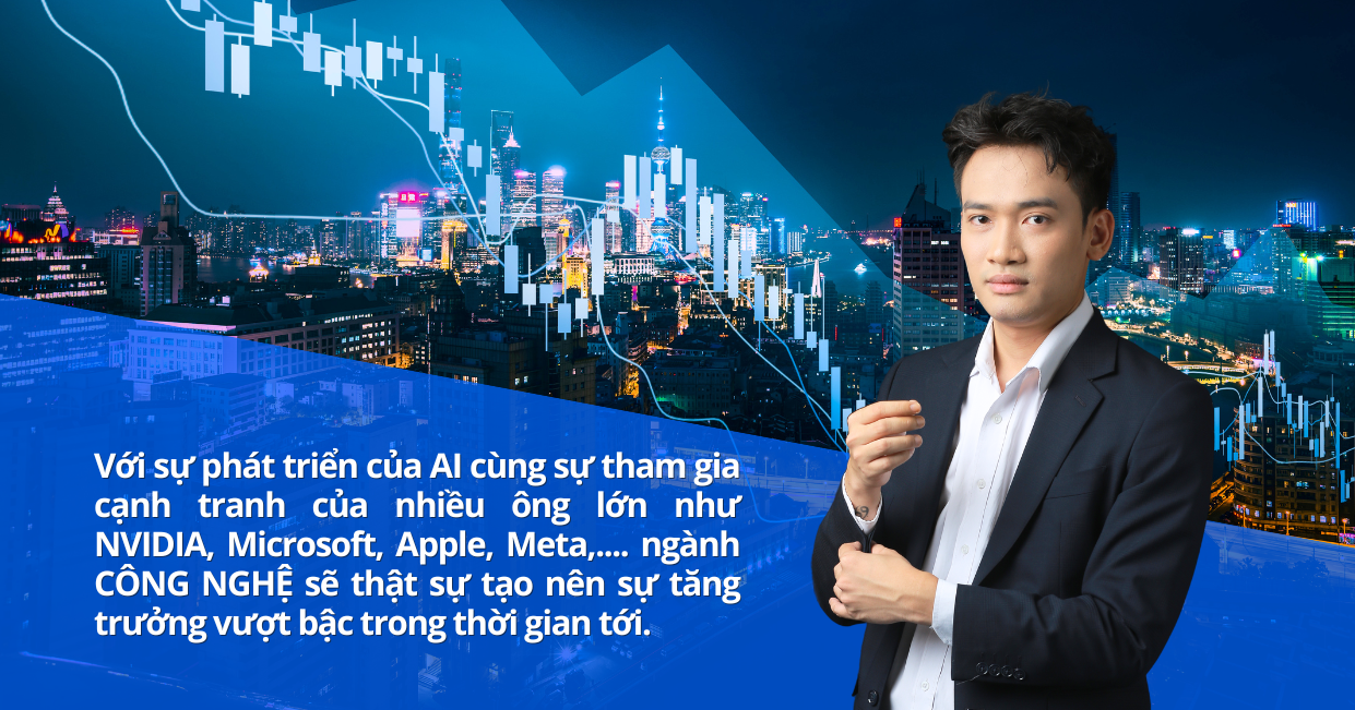Trong đó, nhóm ngành chủ lực sẽ phát triển một cách bùng nổ được chuyên gia James Phạm nhắc đến chính là nhóm ngành công nghệ. Với sự phát triển của AI cùng sự tham gia cạnh tranh của nhiều ông lớn như NVIDIA, Microsoft, Apple, Meta,.... ngành công nghệ sẽ thật sự tạo nên sự tăng trưởng vượt bậc trong thời gian tới.