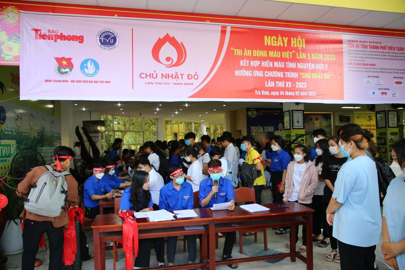TPO - Sáng 4/2, hàng trăm cán bộ, sinh viên nhiệt tình tham gia ngày hội phát động phong trào hiến máu tình nguyện, hưởng ứng Chủ nhật Đỏ lần thứ XV năm 2023 do Báo Tiền Phong phối hợp Trường Đại học Trà Vinh tổ chức.