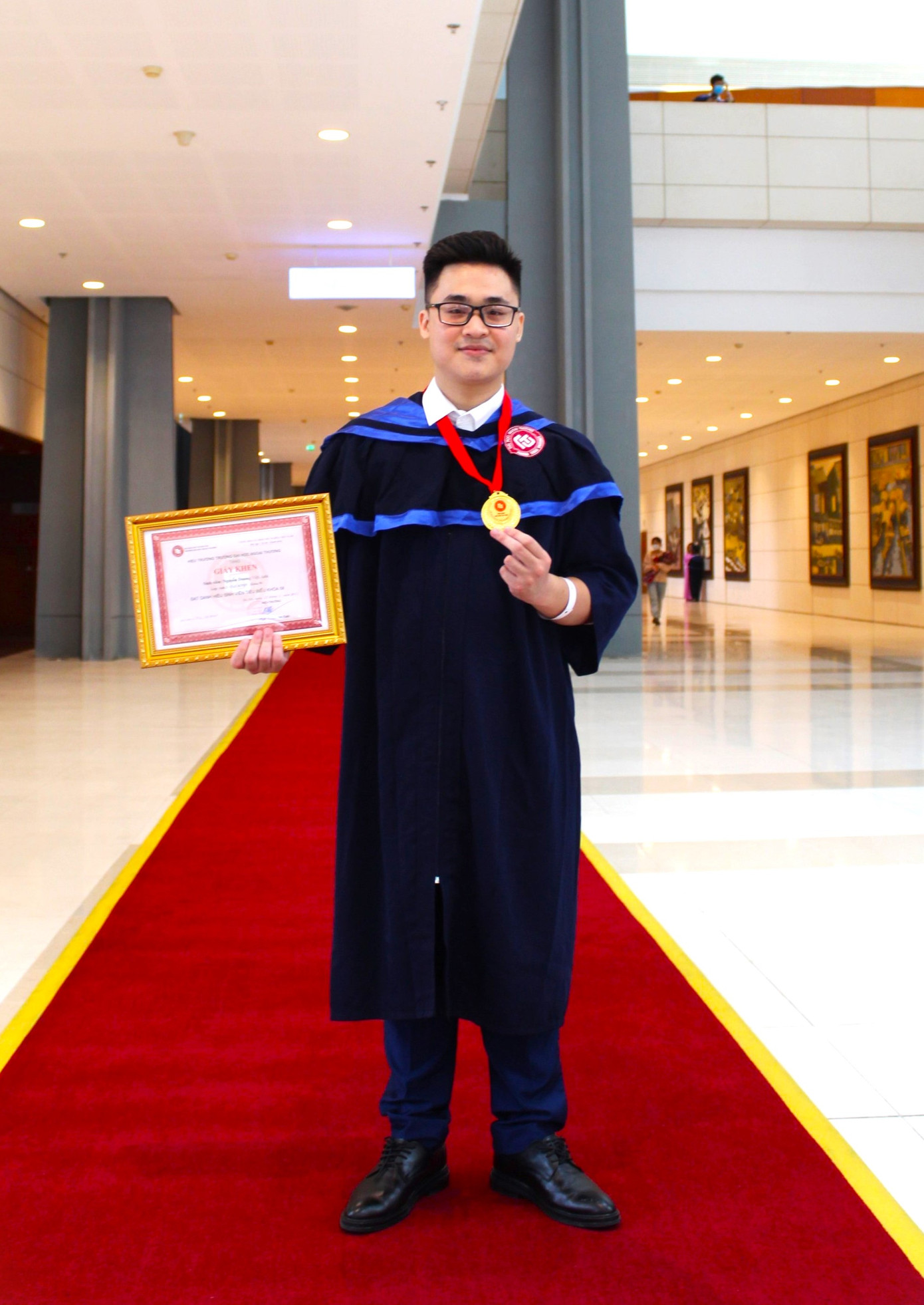 Tháng 4 năm 2023, trong lễ tốt nghiệp, mình đã chính thức tốt nghiệp loại xuất sắc (GPA 3.92) và được vinh danh là một trong 20 sinh viên tiêu biểu toàn khóa. 4 năm học trôi qua, giờ nhìn lại, chính những bỡ ngỡ lúc mới nhập học, những khó khăn trong thời gian giãn cách đã phần nào giúp mình cứng cỏi, bản lĩnh và trưởng thành hơn. Từ một sinh viên năm nhất chỉ biết đến trường rồi lại về nhà, mình đã dần tự nhìn nhận, tự thay đổi bản thân, tìm ra những điều cần thiết và phù hợp, để từ đó dần làm rõ định hướng phát triển và lên các kế hoạch, mục tiêu cụ thể. Phải thừa nhận, mình là người khá “nghiêm khắc” với chính bản thân, từ mục tiêu, lối sống cho đến các chi tiết nhỏ nhất. Cũng nhờ lối sống “nghiêm khắc” với bản thân và nguồn năng lượng tích cực phát huy đúng thời điểm, những rào cản, khó khăn đã dần được mình tháo gỡ, chuyển hóa thành cơ hội và lợi thế. Quan trọng hơn, khi còn trẻ, hãy chủ động và tích cực học hỏi, tìm hiểu những điều thiết thực trong cuộc sống, hãy biết lắng nghe, tiếp nhận có chọn lọc ý kiến đóng góp từ mọi người để hoàn thiện bản thân.