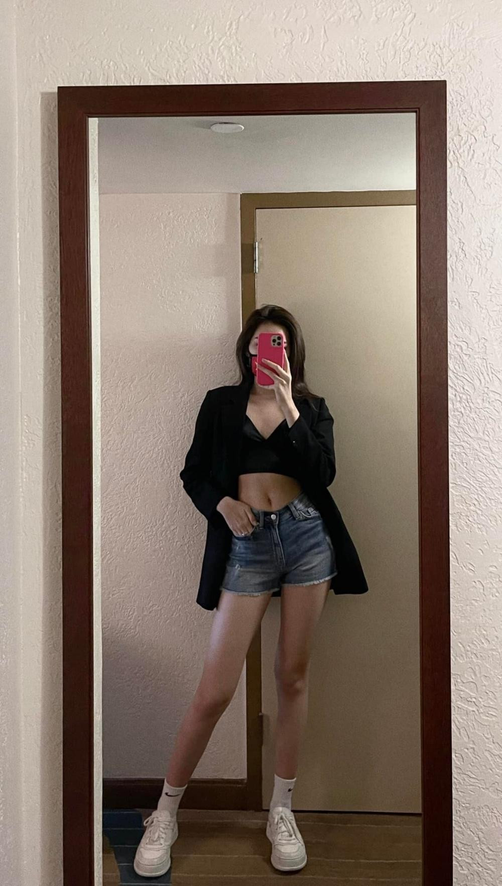 Đầu tiên là hai bức ảnh người đẹp mặc áo vest, quần soóc, áo crop-top khoe vòng eo nhỏ và đặc biệt là đôi chân dài thẳng tắp.