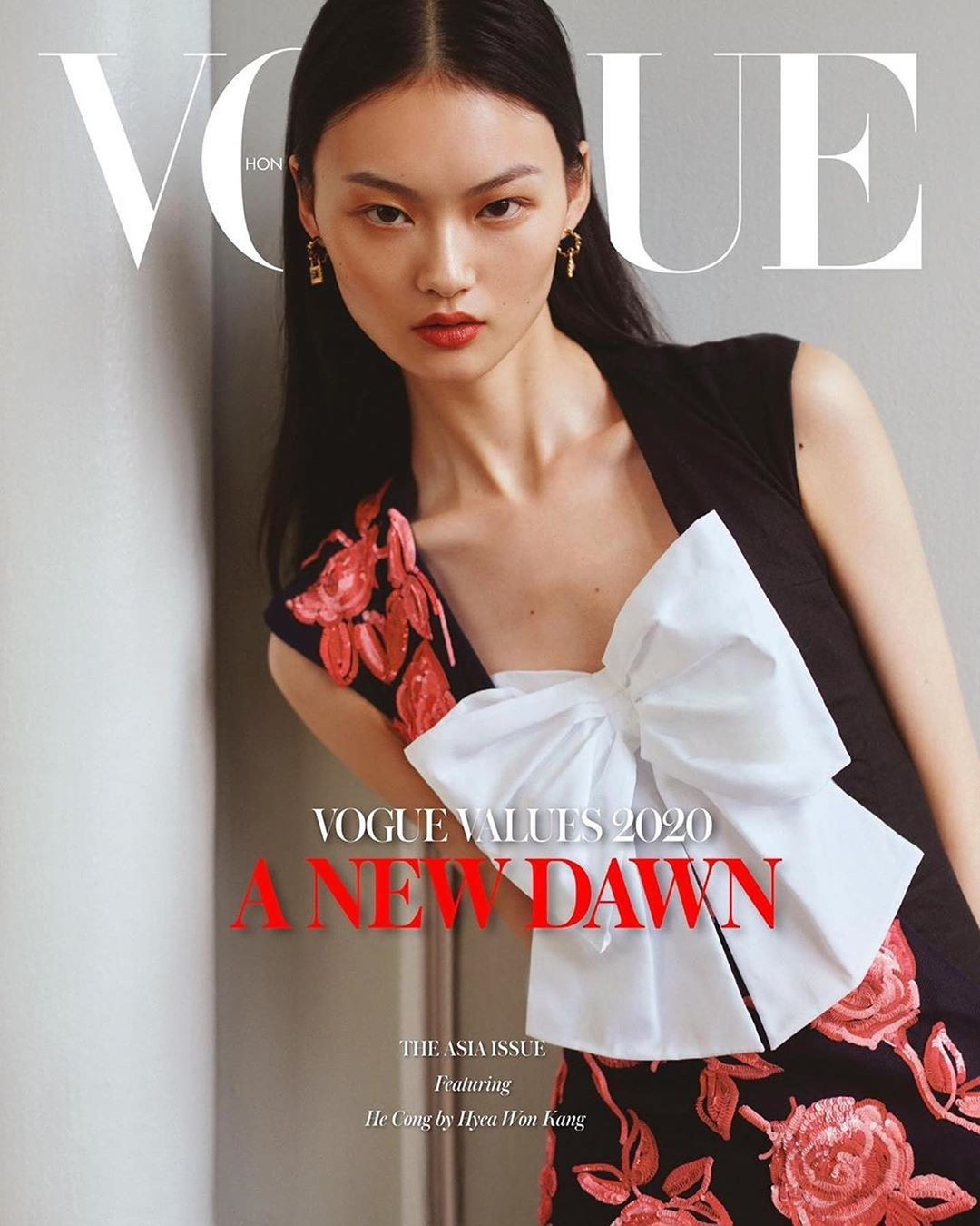 Người mẫu He Cong diện mẫu áo này trên bìa Vogue