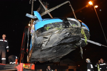 Phải mất 1,5 tiếngđể cần cẩu và hai chiếc xe cứu hỏa đưa chiếc xe lên mặt đường. Và giờ đây, chiếcsiêu xe hỏng này được công ty bảo hiểm Axa đem bán đấu giá tại Thụy Sĩ, với mứcgiá khởi điểm chỉ 100 Franc Thụy Sĩ.