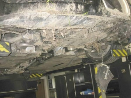 Hình ảnh đượcđăng tải cho thấy chiếc xe bị hư hỏng khá nặng. Cản trước, các tấm ốp phía trướcdưới gầm xe, bậu cửa, cánh cửa và sàn xe bị móp méo. Với tình trạng này, chiphí khôi phục sẽ rất cao, vì một số phụ tùng của siêu xe này có thể đắt ngang mộtchiếc hatchback cỡ nhỏ.