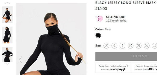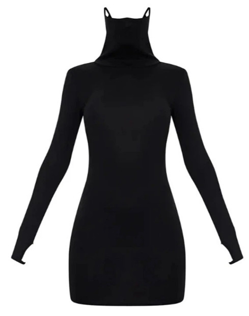 Đây là chiếc váy của thương hiệu PrettyLittleThing, giá 14 bảng (khoảng 420.000 đồng). Nó là kiểu váy ngắn cao cổ, phù hợp để mặc vào mùa Thu - Đông. Nhưng phần cổ của chiếc váy rất dài, có quai để ngoắc vào tai, che mũi miệng như khẩu trang luôn.