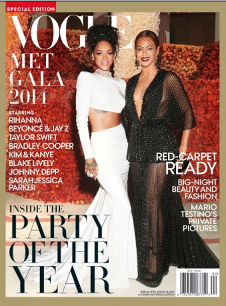 Đây không phải lần đầu tiên Rihanna xuất hiện trên trang bìa ấn phẩm đặc biệt nhân sự kiện Met Gala của Vouge. Năm ngoái, cô xuất hiện trên trang bìa cùng nữ ca sỹ Beyonce.