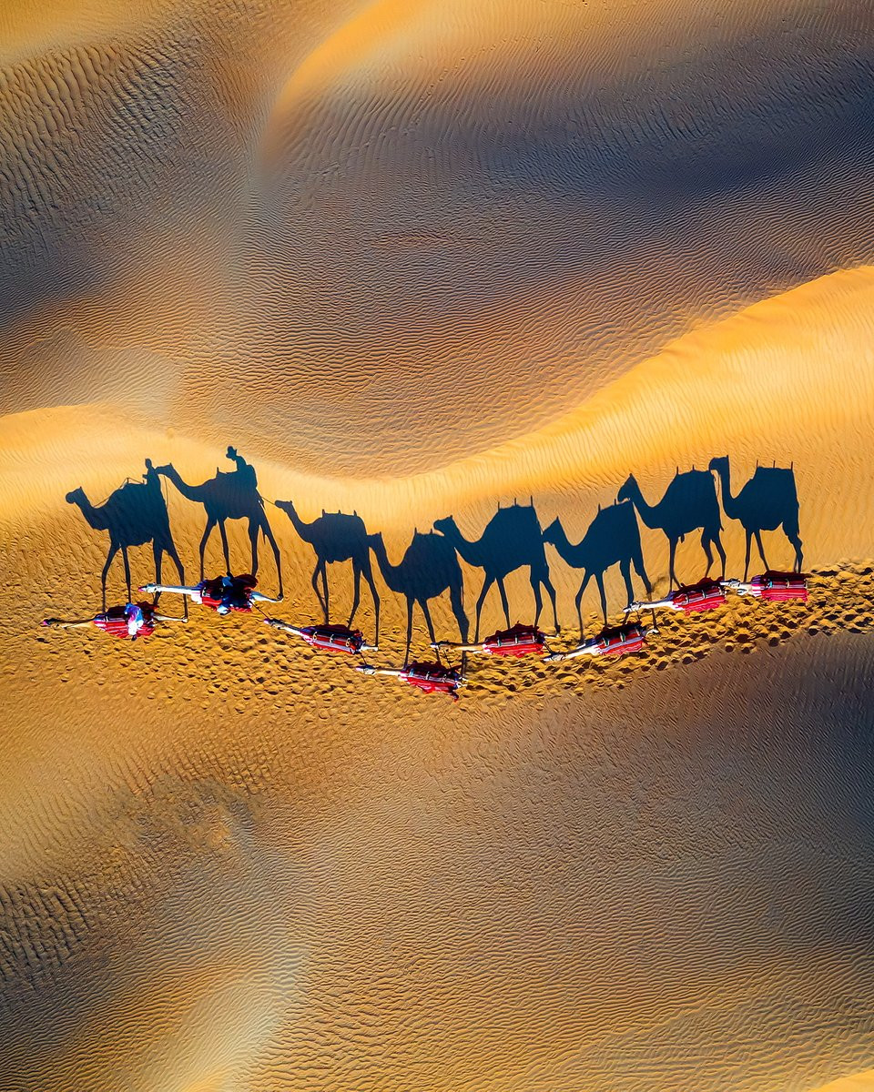Tác phẩm “Cưỡi lạc đà qua sa mạc lúc hoàng hôn” ở sa mạc Dubai (UAE ) của @pixelpann (Anh).