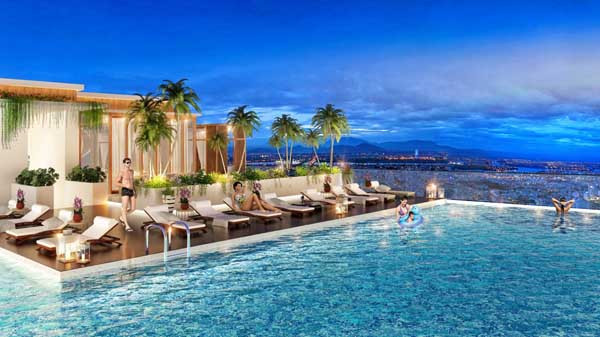 Sky Pool Bar là nơi lý tưởng để khách hàng có những trải nghiệm đẳng cấp thời thượng. Từ đây, du khách có thể bao quát toàn cảnh bãi biển Mỹ Khê, phía sau là thành phố lung linh ánh đèn, thưởng thức không gian âm nhạc sôi động và các hoạt động giải trí hấp dẫn