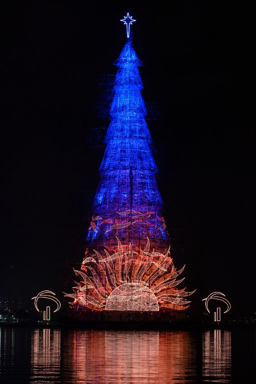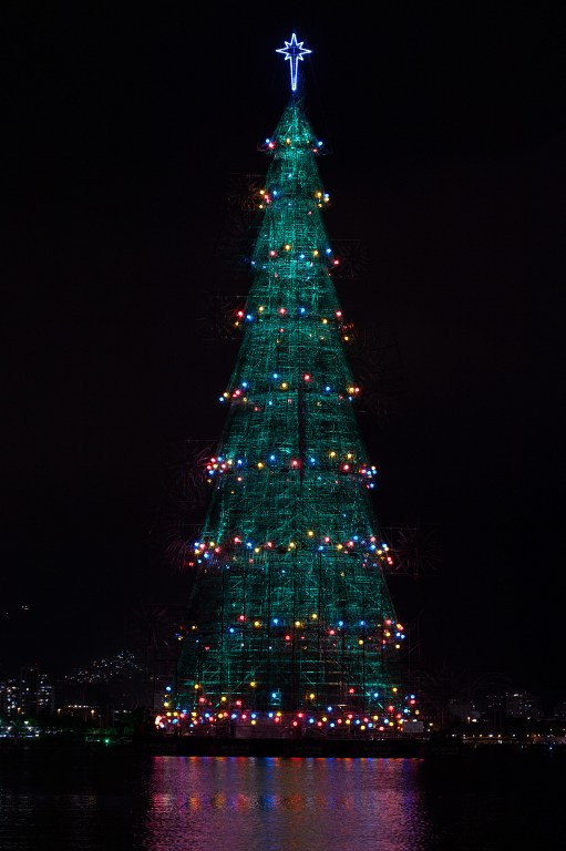 Cây giáng sinh nổi đạt kỷ lục Guinness này được đặt trên mặt nước của phá Rodrigo de Freitas ở Rio de Janeiro cao là 85 mét, nặng hơn 540 tấn và được làm bằng kim khí.