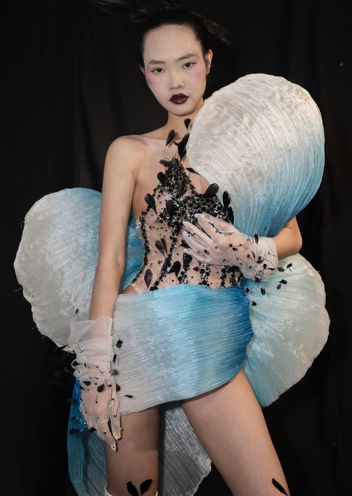 BST "Blue Heaven" chính là một trong những dấu ấn mạnh mẽ nhất trong hành trình thiết kế của nữ sinh 2K1. Lấy cảm hứng từ vẻ đẹp độc đáo và kiêu hãnh của Hoa Anh Túc Xanh Himalaya, Thanh Thư đã khéo léo biến tấu những đường nét tinh tế, sắc xanh huyền bí của loài hoa này thành những bộ trang phục lộng lẫy, tôn vinh vẻ đẹp mạnh mẽ và đầy nội lực của người phụ nữ hiện đại.