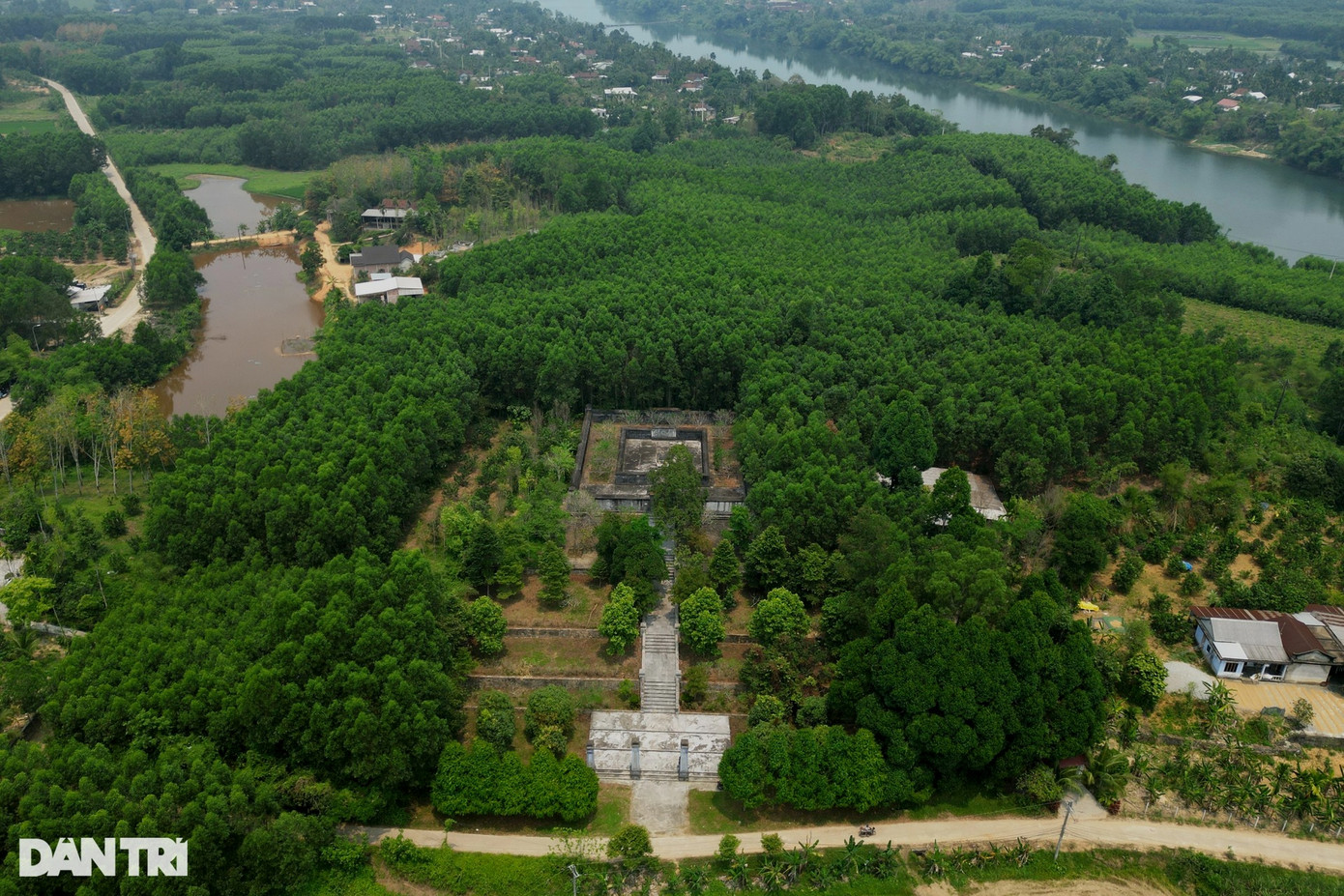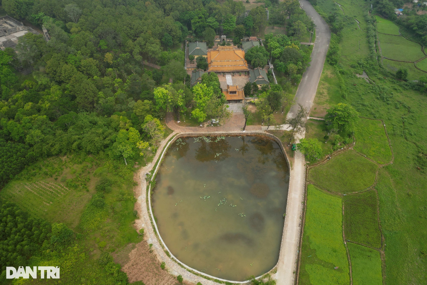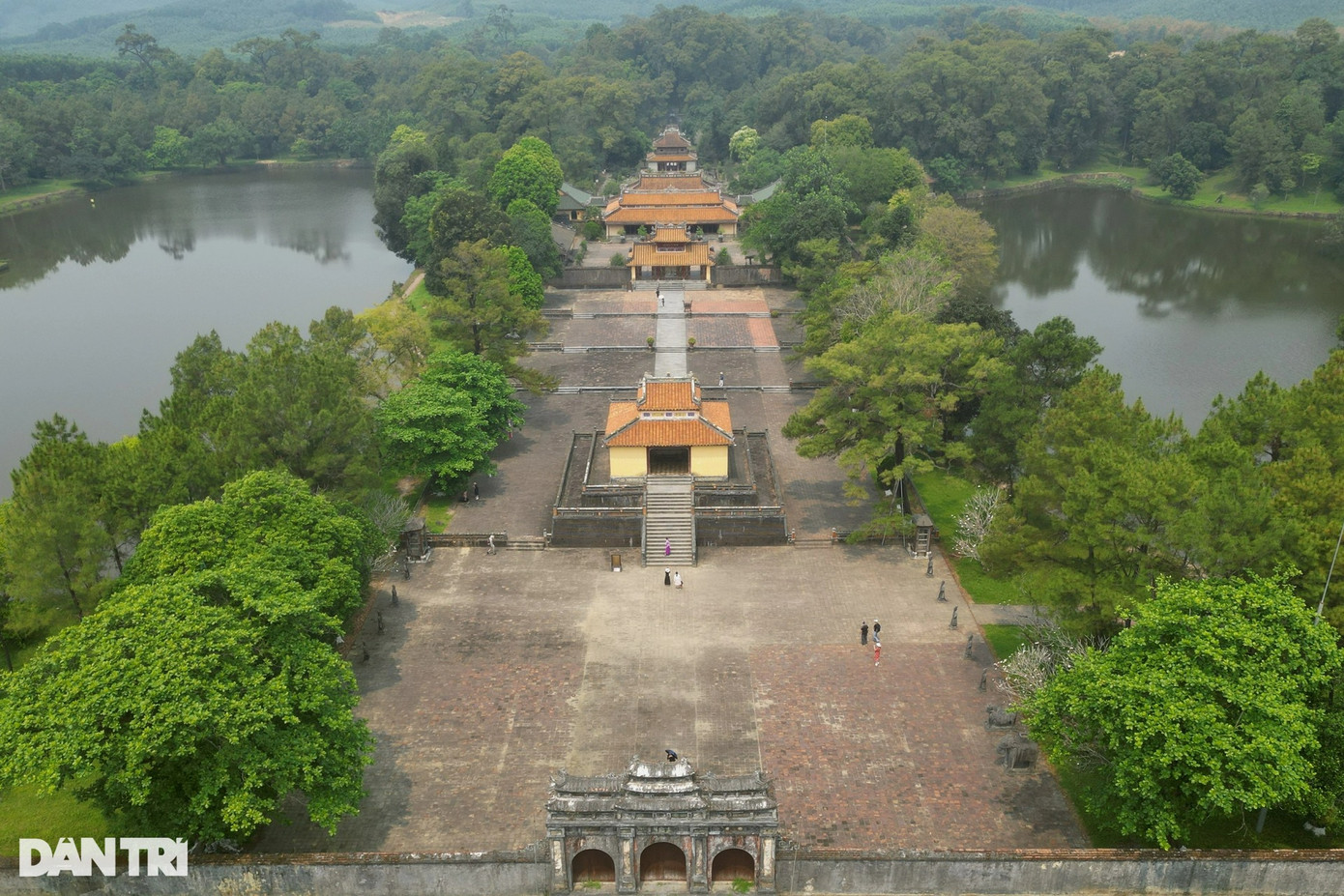 Trong ảnh là cụm công trình kiến trúc bên trong quần thể lăng vua Gia Long (Thiên Thọ Lăng), nằm tại xã Hương Thọ, thành phố Huế. Nơi đây vừa hoàn thành quá trình trùng tu, với kinh phí hơn 40 tỷ đồng.