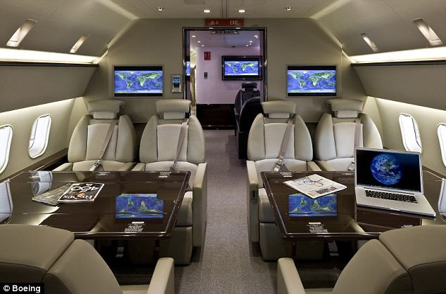 Còn tỷ phủ Donald Trump lại chỉ mất 100 triệu USD để tậu chiếc Boeing 757. Trên máy bay của ông có vòi nước bằng vàng, trần phủ nhung và đèn pha lê Waterford. Chiếc Boeing này có phòng ngủ riêng rộng rãi, ti vi màn hình phẳng siêu lớn.