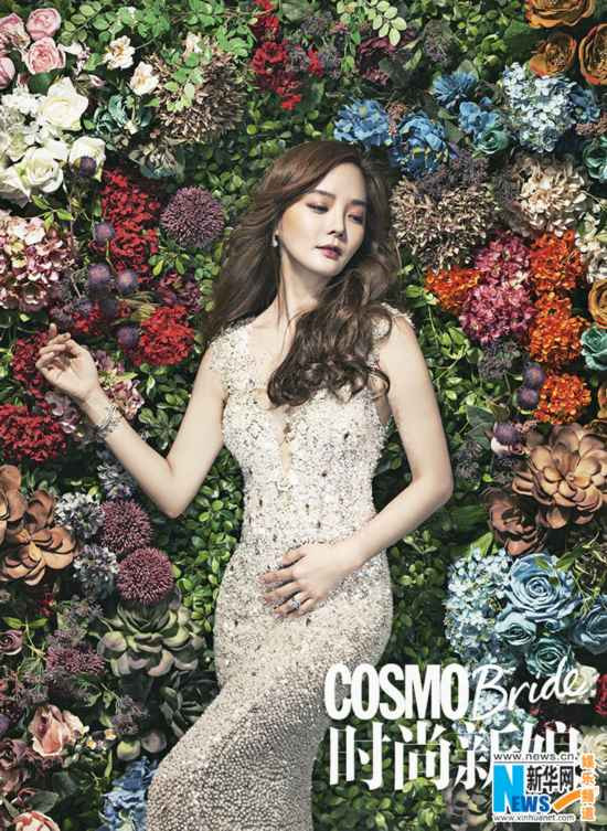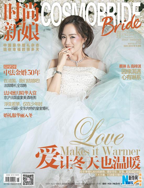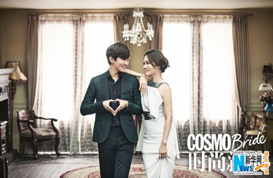 Ngoài ra, nữ diễn viên Chae Rim cũng khoác áo tân nương, rạng rỡ sánh đôi cùng chú rể Cao Tử Kỳ trong loạt ảnh của tạp chí Cosmo Bride số tháng 11/2014
