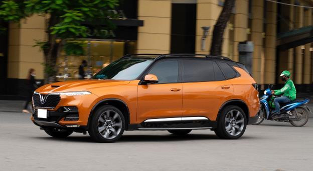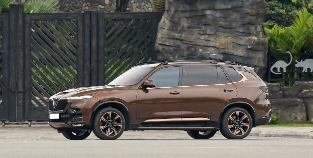 Màu cam Sunset nổi bật trên phố đông. Với kích thước các chiều dài x rộng x cao lần lượt là 5.146 x 1.987 x 1.760 (mm), VinFast President sở hữu dáng vóc bệ vệ tương đương với Lexus LX570 hay BMW X7, cùng thiết kế sang trọng đặc trưng của hãng xe Việt.