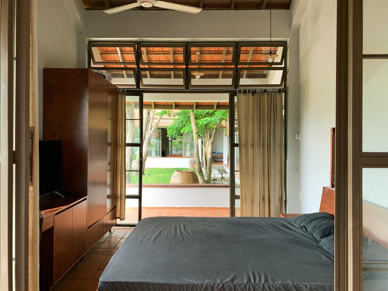 | “Nhà Bình Dương dường như không có ranh giới vì cả ngôi nhà hòa vào những tán cây cao vút và hoạt động sinh hoạt thường ngày gắn kết con người với con người, con người với muông thú để mang lại cảm giác bình yên và thanh thản cho người ở”, KTS nói. |
