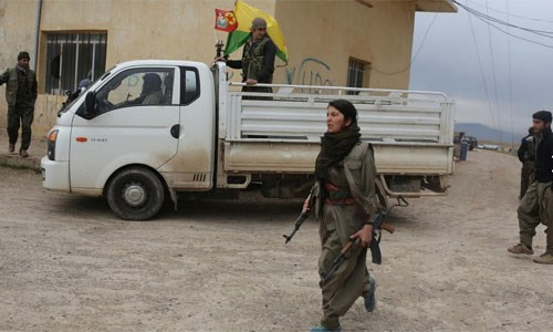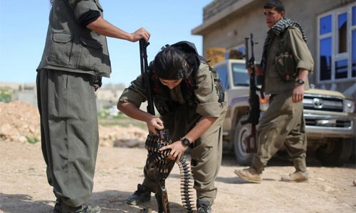 Nữ chiến binh người Kurd đang lắp đạn và kiểm tra vũ khí trước khi tới vị trí vừa bị phiến quân IS đánh bom xe.