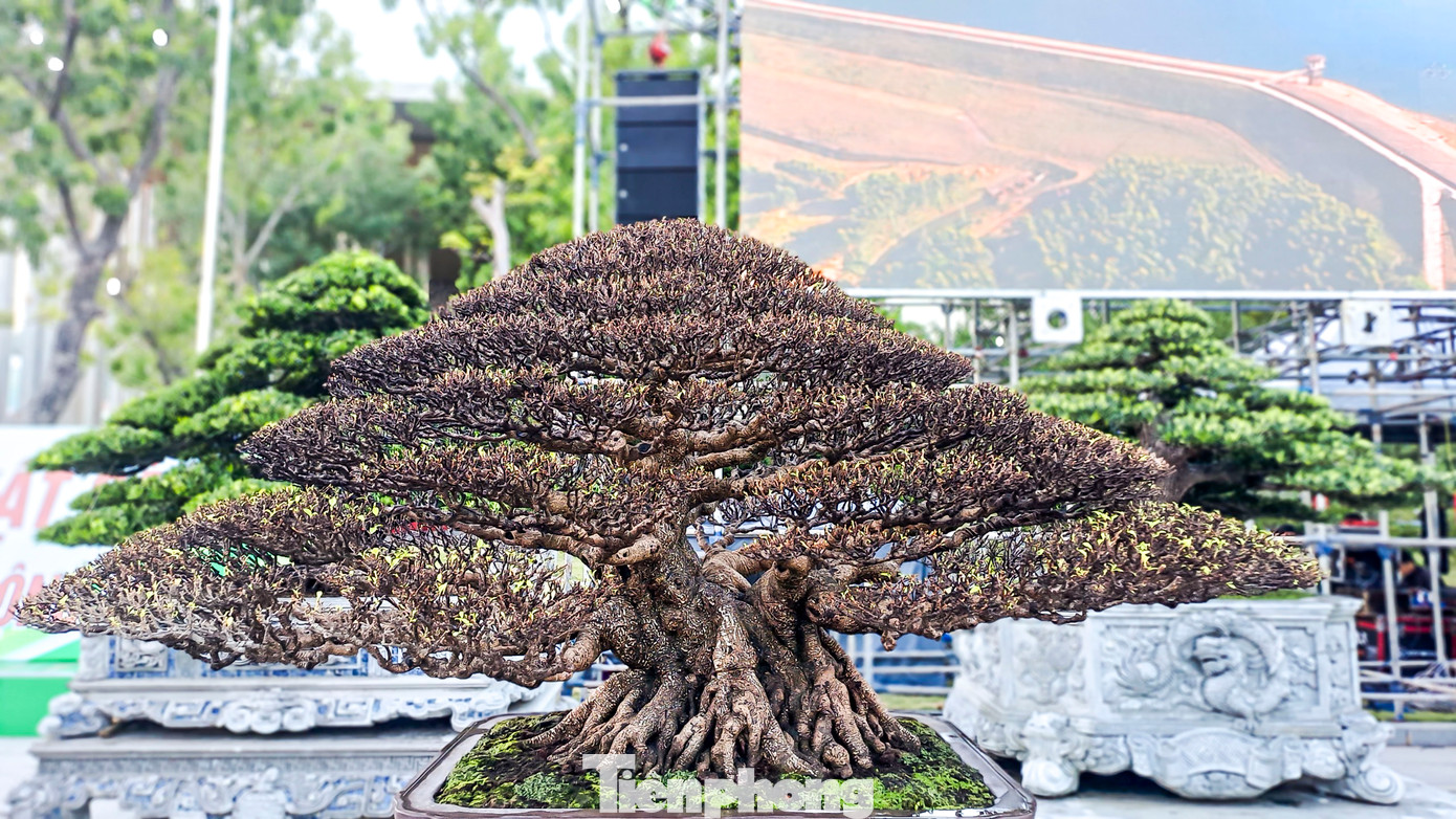 Chiều ngày 18/8, theo ghi nhận của PV, đông đảo người dân và du khách tập trung về khu vực Trung tâm Hội nghị tỉnh Bình Định để chiêm ngưỡng những tác phẩm bonsai độc đáo quy tụ về triển lãm. (Ảnh: Trương Định).