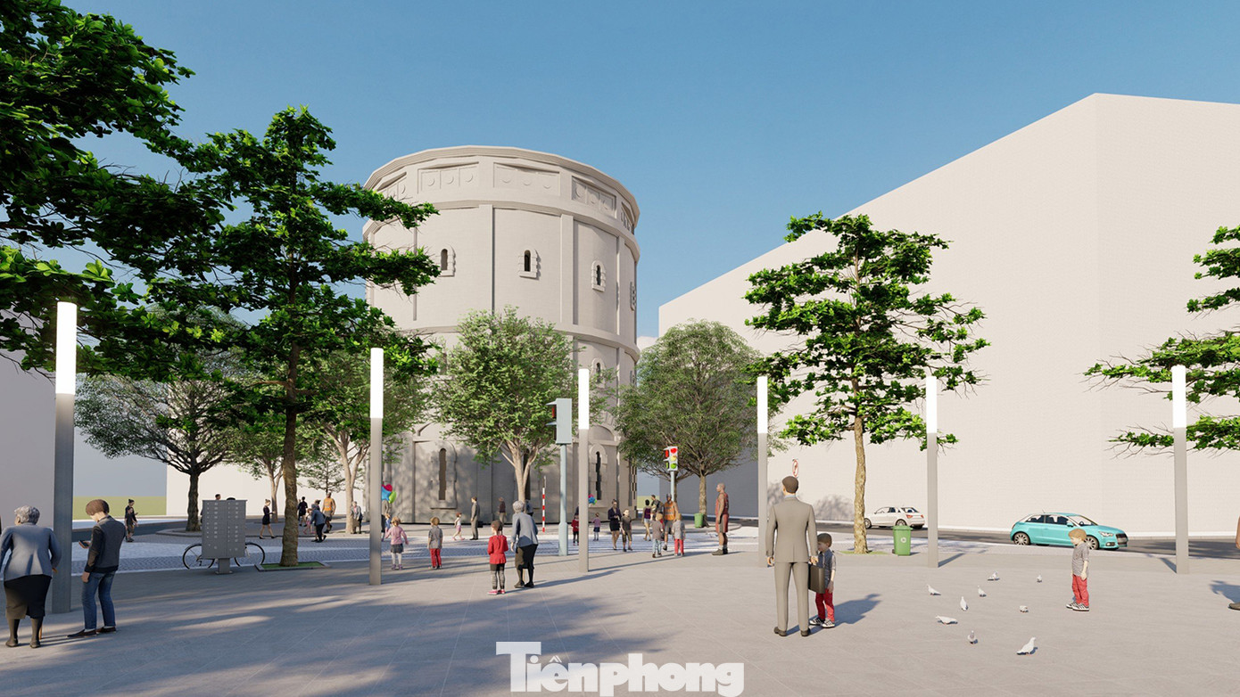 | Phối cảnh khu vực Vườn hoa Vạn Xuân kết nối với Tháp nước Hàng Đậu - tạo không gian sinh hoạt cộng đồng cho người dân và du khách. |