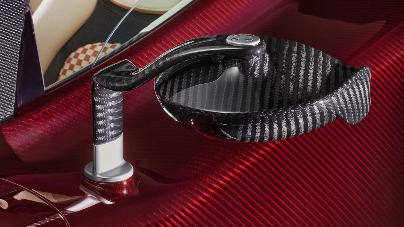 Khách hàng mua Utopia Roadster sẽ được cung cấp nhiều tùy chọn cá nhân hóa, bao gồm cả cấu hình Sport Pack trên biến thể coupe. Chiếc xe trưng bày đi kèm gói này nhưng đặc biệt hơn nhờ ngoại thất màu đỏ Habanero Red mới, kết hợp với bộ mâm carbon Aeroblade.