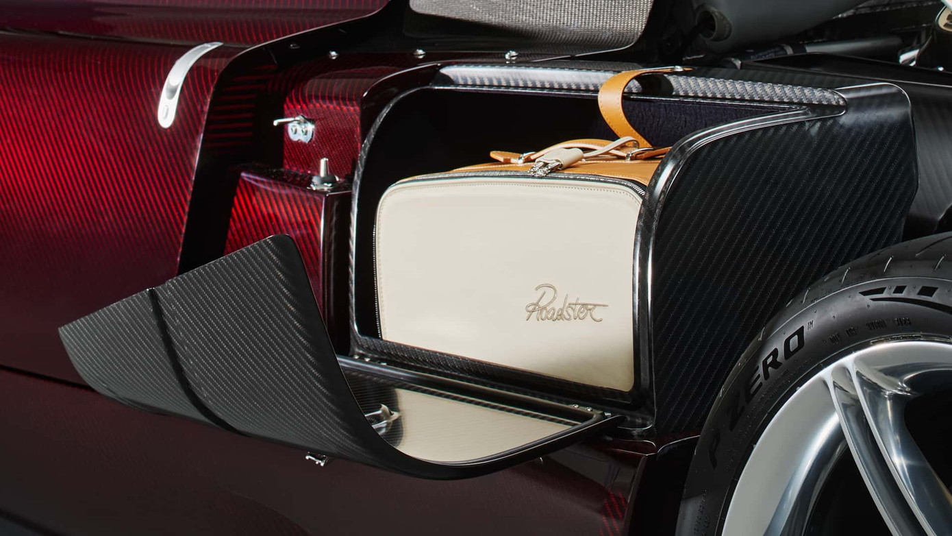 Trong khi đó, bản mui mềm có thể gấp gọn và đặt trong một chiếc vali phía sau ghế ngồi. Ngoài ra, người dùng có thể sử dụng một chiếc vali da khác làm từ sợi carbon, đặt trong khoang đặc biệt bên cạnh động cơ xe.