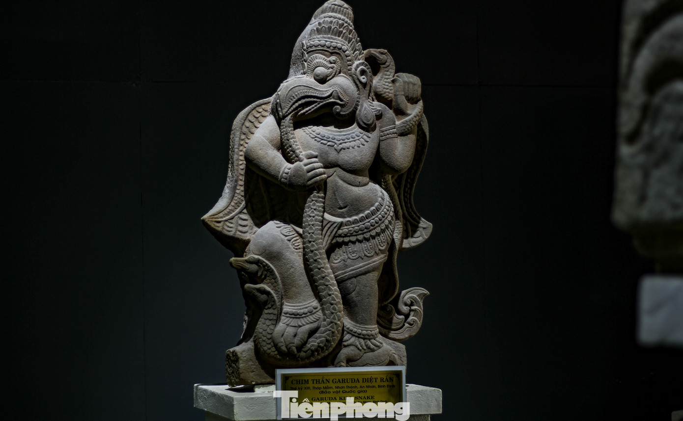 Phòng trưng bày tại Bảo tàng Bình Định. Ảnh: Trương Định Bà Nguyễn Thị Nhân – cán bộ Bảo tàng Bình Định cho biết, tại bảo tàng hiện có 5 bức phù điêu được công nhận là Bảo vật quốc gia và có khoảng 10.000 ngàn hiện vật Chăm đang được trưng bày và lưu giữ.