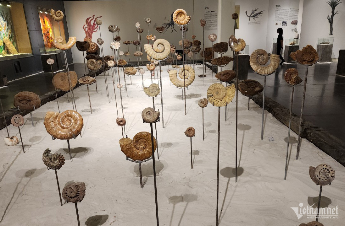 Các mẫu hóa thạch được trưng bày như tác phẩm sắp đặt.