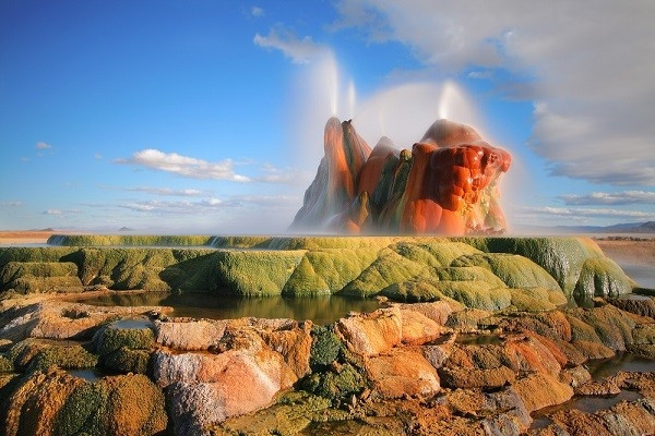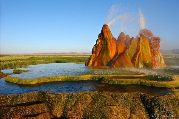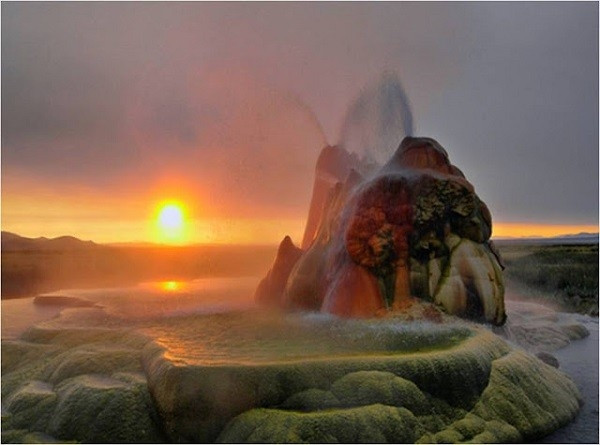 Mạch nước kỳ lạ này nằm ngay cạnh rìa của hồ, với chiều cao 1,5m và khoảng 3,6m nếu tính cả chiều cao của mỏm đất phía dưới. Năm 1916, chủ một trang trại tư nhân đã khoan một cái giếng với hy vọng sa mạc sẽ biến thành đồng cỏ màu mỡ, ông vô tình khoan trúng một túi địa nhiệt nước. Do đó, mạch nước phun này ra đời.