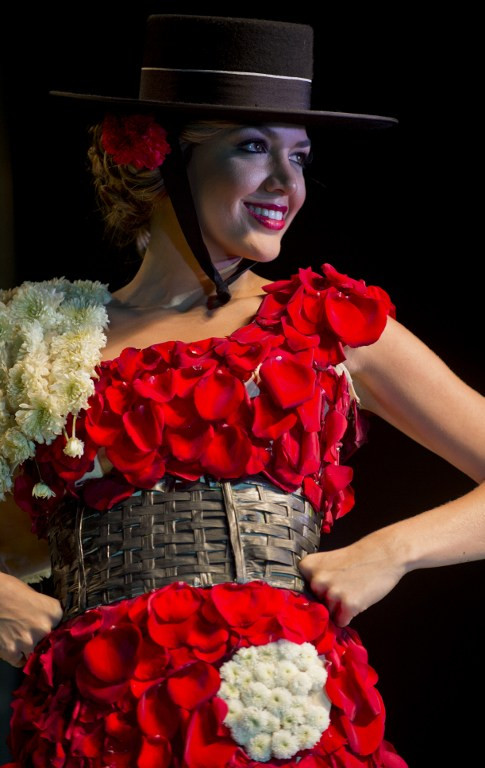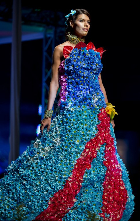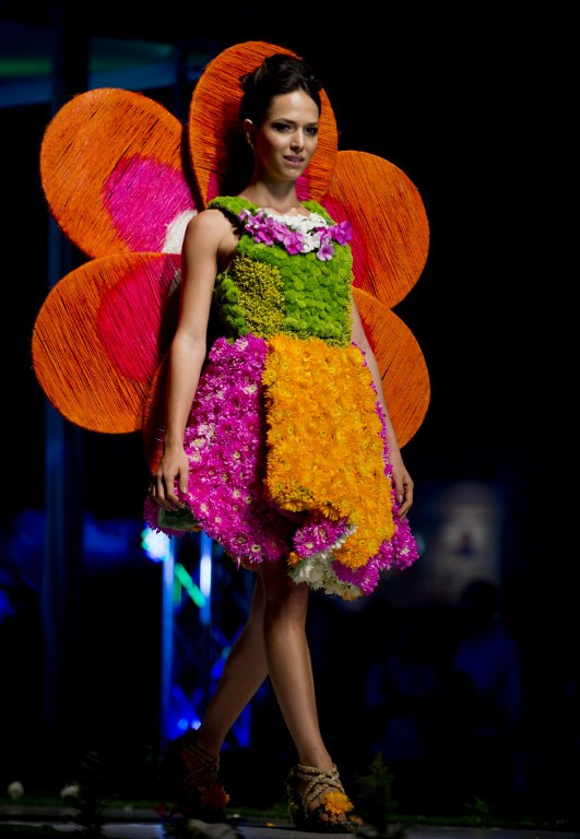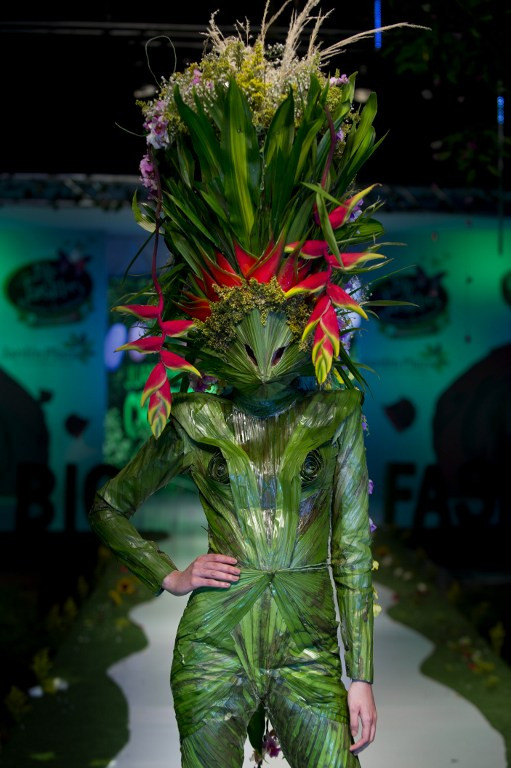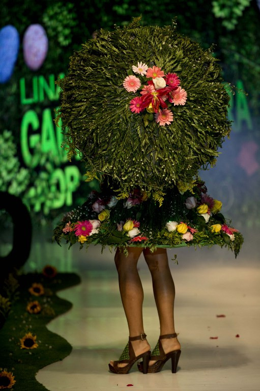 TPO - Khoác trên mình những bộ cánh được làm bằng hoa tươi, thực vật sống và những chất liệu thân thiện môi trường, những người mẫu tại một show thời trang ở Cali, Columbia hôm 29/11 đẹp lung linh, rực rỡ như những vườn hoa.