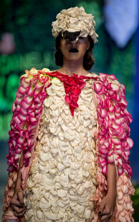 Đây là những mẫu thiết kế của nhà thiết kế Karen Ramiez, người Colombia trong khuôn khổ show diễn thời trang thân thiện với môi trường mang tên Biofashion tại Cali, Columbia hôm 29/11 vừa qua.