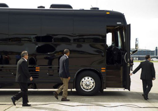 Trong chuyến đi tiếp xúc cử tri tại 3 bang Minnesota, Iowa và Illinois (Mỹ) vừa qua, Tổng thống Obama đã dùng đến chiếc xe buýt triệu đô của mình. Thông thường, cơ quan mật vụ Mỹ sẽ thuê và cải tiến những chiếc xe buýt với mục đích bảo vệ an toàn cho Tổng thống cũng như các ứng cử viên khác.
