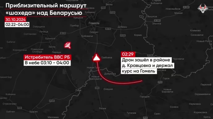 Nhóm giám sát quân sự độc lập của Belarus, Belaruski Hajun hôm thứ Tư (30/10) cho biết, vào khoảng 2h29 ngày 30/10, một máy bay không người lái (UAV) đã xâm nhập không phận nước này và hướng tới tỉnh Gomel - giáp biên giới với Ukraine.