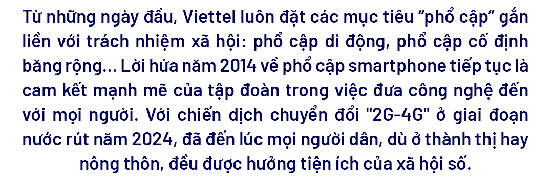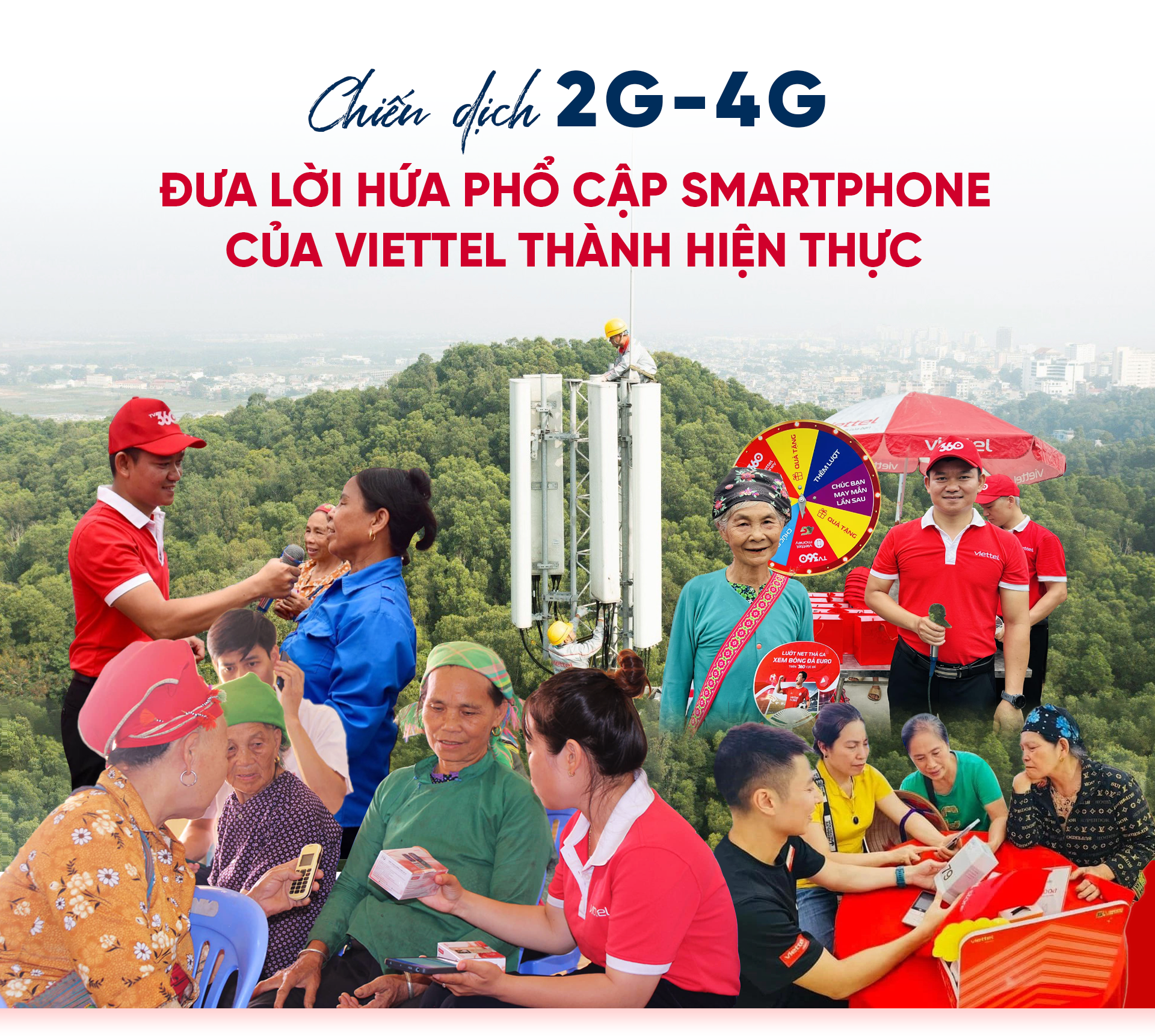 Với chiến dịch “2G-4G”, Viettel đã dốc toàn lực để bà con ở những nơi trước đây chỉ có thoại 2G được tiếp cận với Internet thông qua điện thoại thông minh. Cuộc sống số nơi núi rừng, hải đảo đã bắt đầu, cũng là lúc Viettel hoàn thành lời hứa phổ cập smartphone đến người dân Việt Nam.