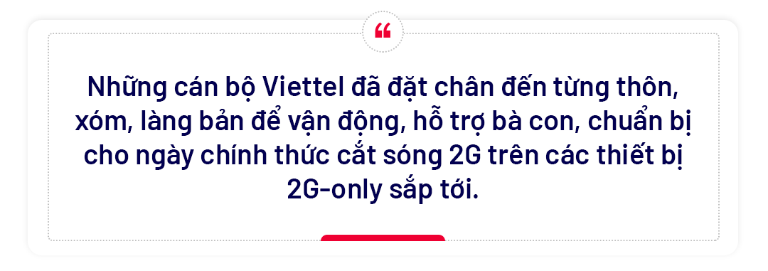 Giống như tại Lào Cai, nhiều chương trình, hoạt động đã được triển khai trên khắp 63 chi nhánh tỉnh, thành của Tổ quốc. Những cán bộ Viettel đã đặt chân đến từng thôn, xóm, làng bản để vận động, hỗ trợ bà con, chuẩn bị cho ngày chính thức cắt sóng 2G trên các thiết bị 2G-only sắp tới.