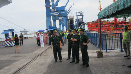 Có mặt tại cảng Baria Serece, phóng viên đã ghi nhận một số hình ảnh bên ngoài chiến hạm và công tác bảo vệ của Bộ đội Biên phòng, các cơ quan chức năng tỉnh Bà Rịa-Vũng Tàu.