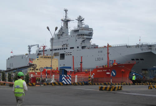Sáng 18/6, chiến hạm chỉ huy và đổ bộ Tonnerre do đại tá Jean-François Quérat làm thuyền trưởng đã cập cảng Baria Serece (thị trấn Phú Mỹ, H.Tân Thành, Bà Rịa-Vũng Tàu).