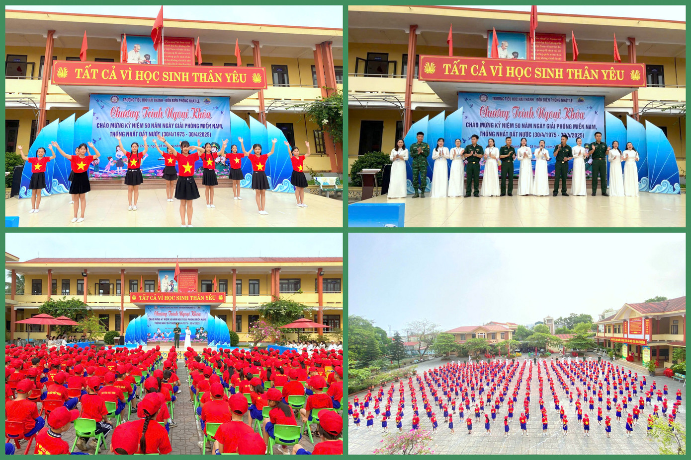 Chương trình ngoại khóa “Tuyên truyền kỷ niệm 50 năm Ngày giải phóng miền Nam, thống nhất đất nước” tại Trường Tiểu học Hải Thành (Đồng Hới, Quảng Bình).