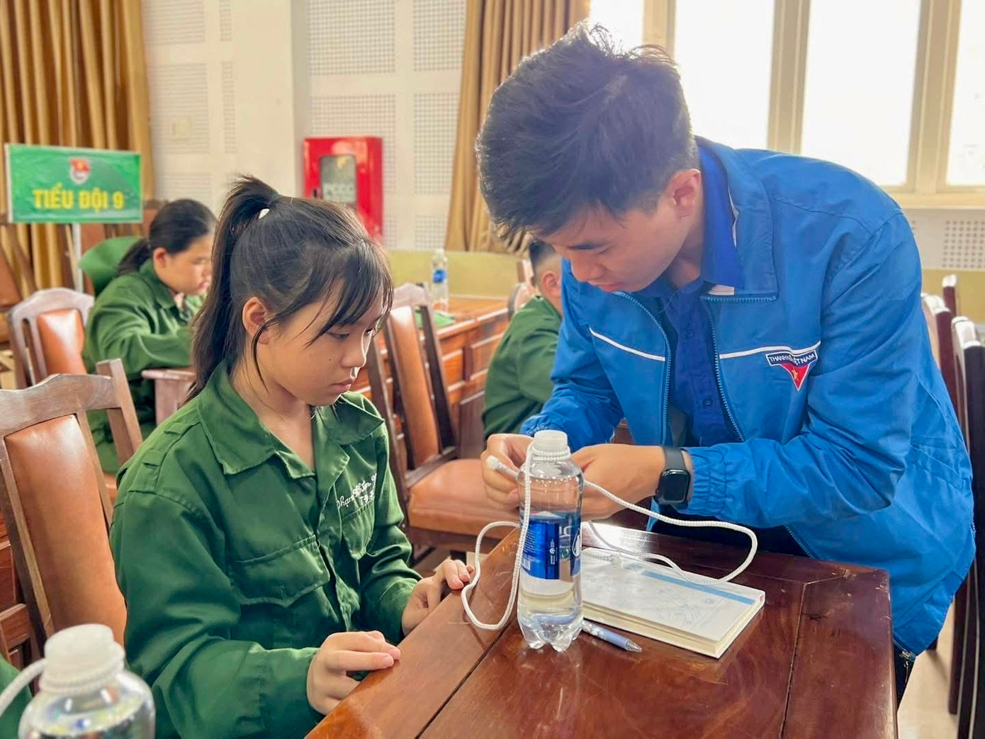 Ngay trong ngày đầu tiên, các em thiếu nhi đã nhanh chóng làm quen với nếp sống kỷ luật: Sinh hoạt theo đơn vị đại đội, học điều lệnh, thực hành tác phong quân nhân, tham gia các trò chơi tập thể nhằm tăng cường sự gắn kết.