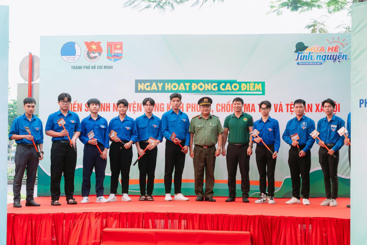 SVO - Ngày 16/6, Công an TP. HCM phối hợp Thành Đoàn TP. HCM tổ chức Ngày hoạt động cao điểm 'Chiến sĩ tình nguyện xung kích phòng, chống ma túy và tệ nạn xã hội' trong Chiến dịch 'Hành quân Xanh' năm 2024 trên địa bàn thành phố.