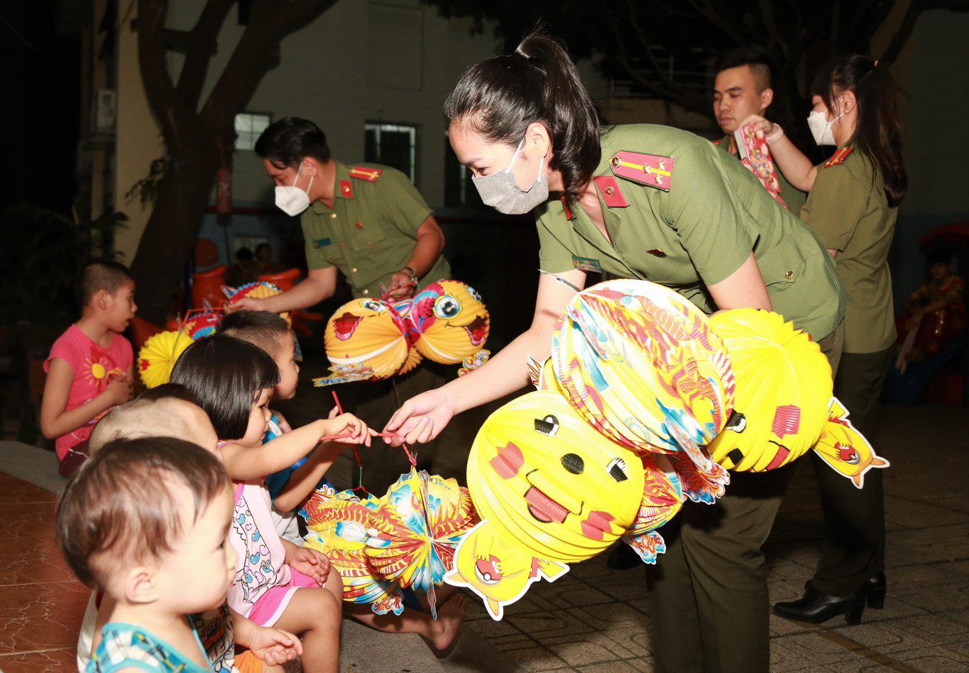 Tại Trung tâm Nuôi dưỡng bảo trợ trẻ em Linh Xuân, các cán bộ chiến sĩ, đoàn viên thanh niên trong lực lượng Công an thành phố đã tổ chức không gian vui hội trăng Rằm vui tươi, phấn khởi dành tặng các bạn nhỏ có hoàn cảnh đặc biệt (trẻ mồ côi, khuyết tật, bị bỏ rơi và các em bị nhiễm HIV...).