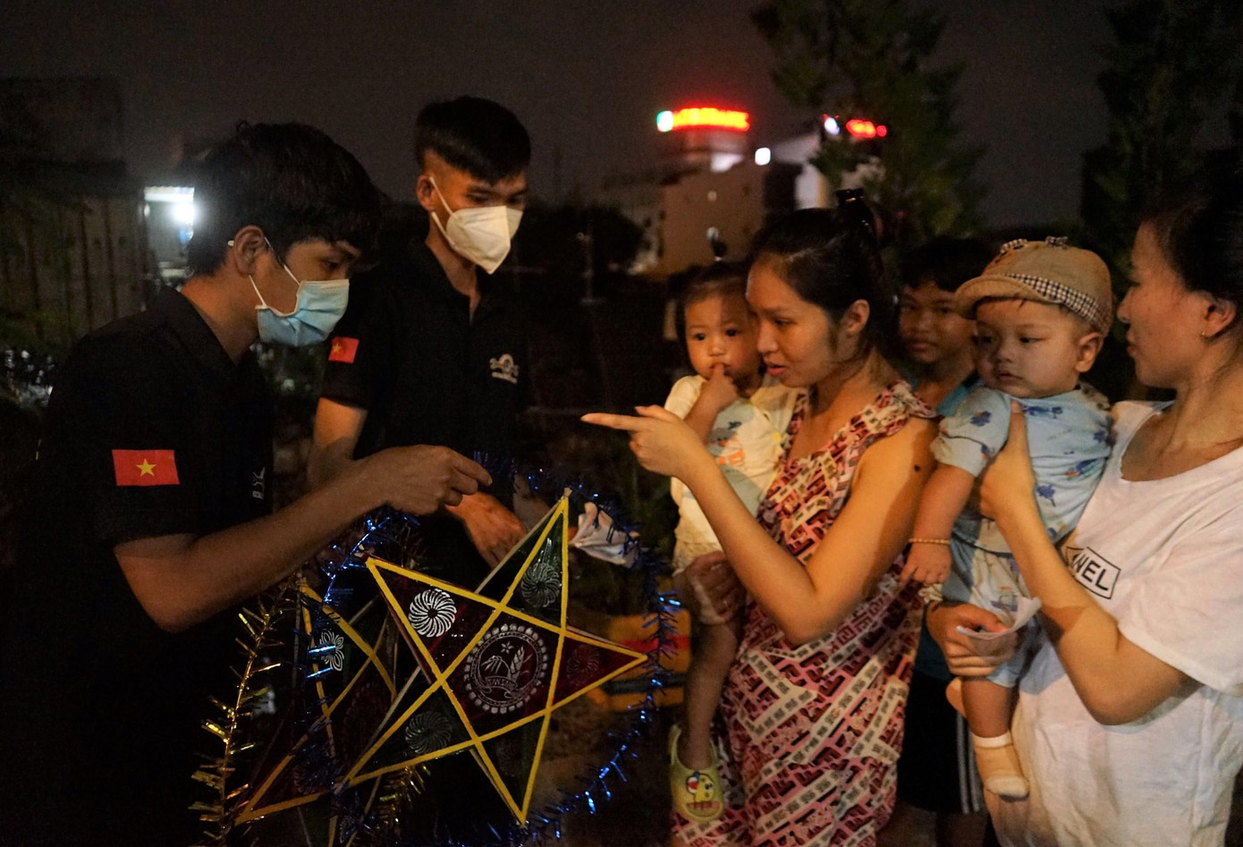 | Hai em bé được mẹ dẫn theo trên bước đường mưu sinh trong đêm đã nhận được món quà ý nghĩa trong mùa Trung thu. |