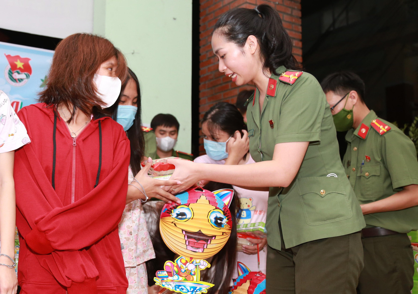 Tối 9/9, Đoàn Thanh niên Công an TPHCM tổ chức "Hành trình trao yêu thương - Vui Trung thu cùng các cháu thiếu nhi" tại Trung tâm Nuôi dưỡng bảo trợ trẻ em Linh Xuân và Trung tâm Nuôi dưỡng bảo trợ trẻ em Tam Bình (thành phố Thủ Đức).