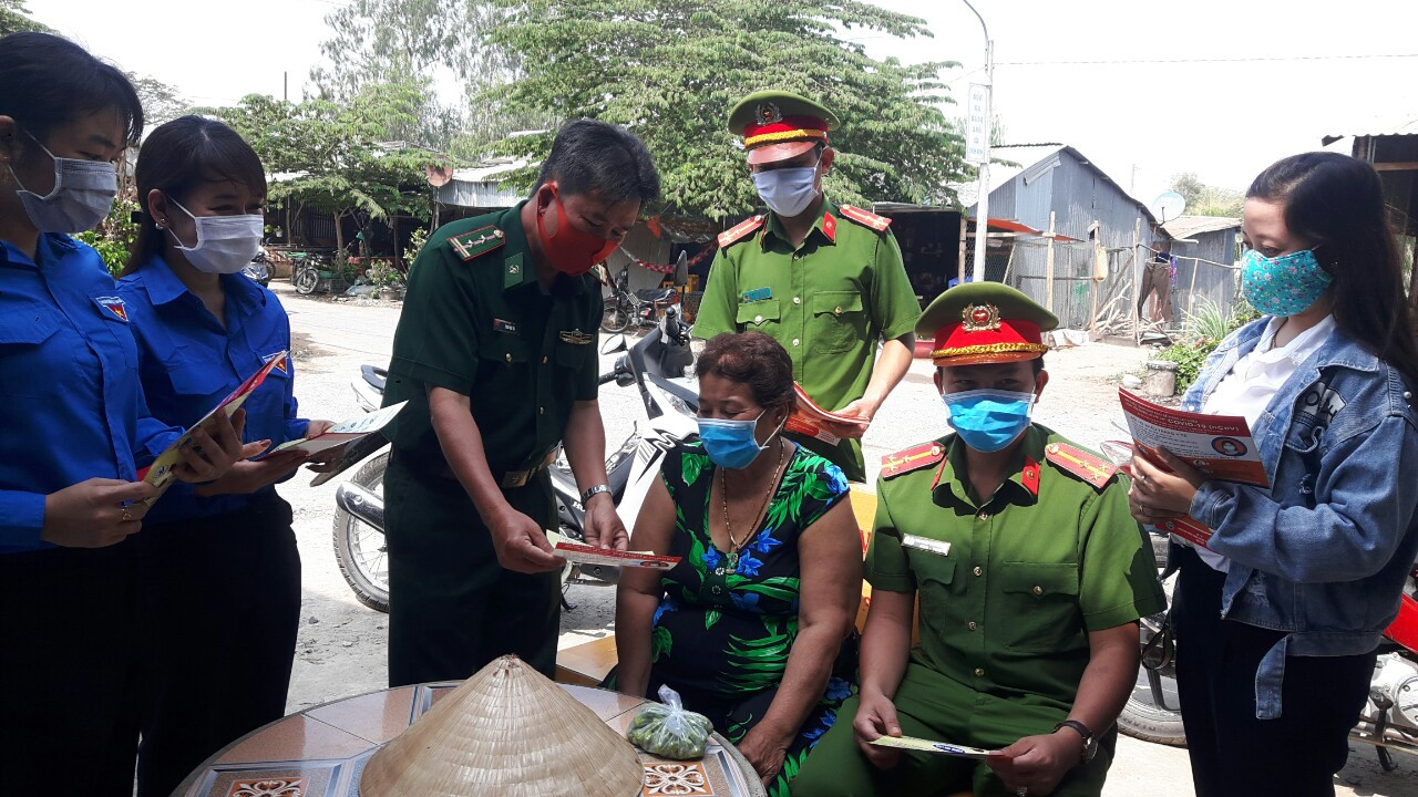 Đoàn thanh niên, lực lượng công an và bộ đội biên phòng, gõ cửa từng nhà, tuyên truyền cho người dân về công tác phòng chống dịch COVID-19 và nhập cảnh trái phép.